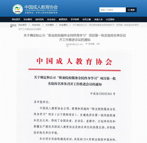 日前,中国成人教育协会公布了第一批“职业院校服务全民学习”实验校名单,bat365在线平台成功入选。服务“职业院校参与全民终身学习”项目是由中国成人教育协会立项、管理和实施的全国性项目。此次全国共有199所院校获批,其中北京市仅有两所。