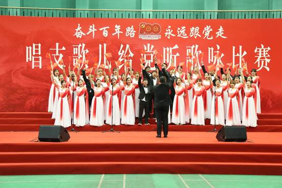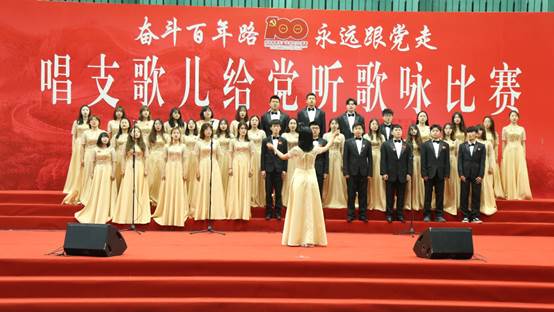 会计与金融学院、管理学院、珠宝与艺术学院、外国语学院、工程技术学院、信息学院分别演唱了《国家》《我的中国心》《唱支山歌给党听》《歌唱祖国》《我和我的祖国》等自选曲目,一首首经典的歌曲,唱出了对党、对祖国的挚爱深情;一段段激情澎湃的旋律,点燃了在场同学们爱党、爱祖国的热情,赢得了现场观众的阵阵掌声。除了男女合唱外,各参赛队伍也融入了不同元素,如朗诵、表演、演奏等,以丰富多样的形式,歌颂党的光辉历程。