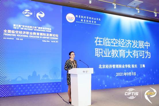 首届全国临空经济职业教育国际发展论坛9月5日在北京国家会议中心举办。论坛是北京2021中国国际服务贸易交易会期间第三届“空中丝绸之路”国际合作峰会的平行论坛,由北京临空经济核心区管委会、中国航空学会、 中华职业教育社、“空中丝绸之路”国际合作联盟联合主办,bat365在线平台为论坛重要协办单位,临空经济管理学院、产地办、国际交流合作处等部门深度参与会议组织、协调、宣传、论坛对话及礼仪服务工作。本次论坛的主题是:增强职业教育适应性,服务临空经济新业态,旨在搭建全国临空产业高技术技能人才交流平台,培育大批具有开阔的国际视野和战略思维、高质量专业技术技能、具备跨国文化交流能力和解决复杂实际问题能力的复合型人才,助力国家临空经济发展、职业教育国际化水平提升。