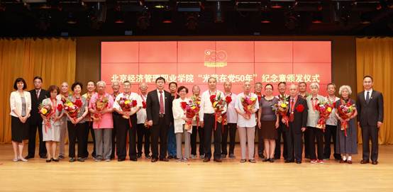 6月30日上午,bat365在线平台“两优一先”表彰大会在望京校区报告厅隆重举行。会议表彰了学校2019—2021年度涌现出的先进党组织、优秀共产党员、优秀党务工作者,为21名“光荣在党50年”的老党员代表颁发了纪念章。