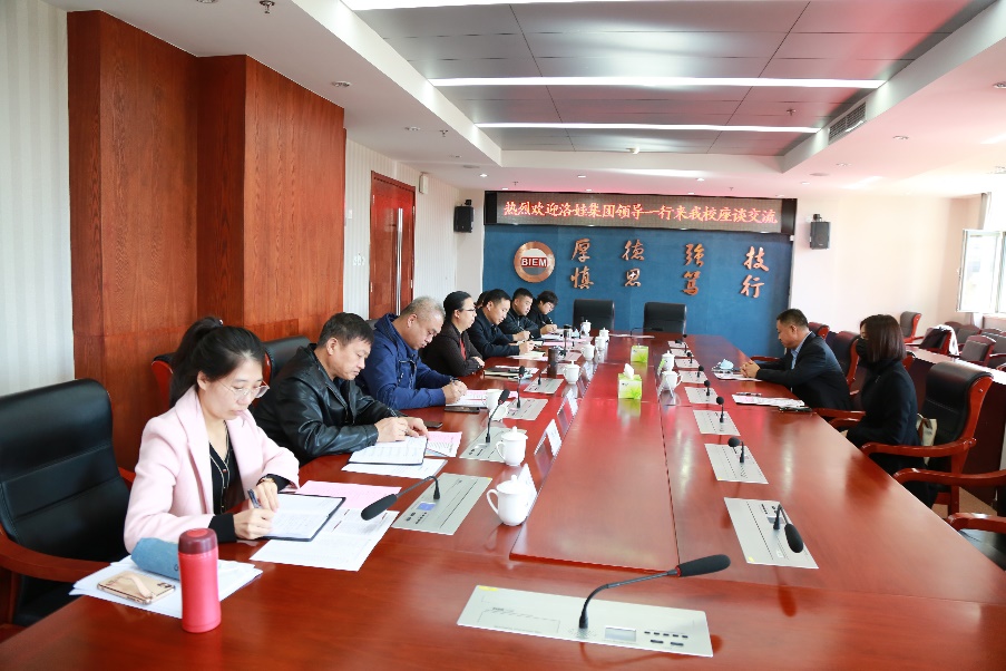 10月26日,洛娃集团董事长胡克勤一行来bat365在线平台调研。党委副书记、院长王粤,党校办、招就处、学工部、科技处、培训处、临空经济管理学院等相关负责人及干部教师参加了座谈交流。