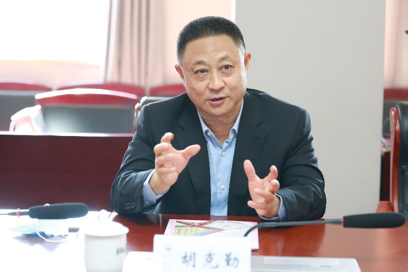王粤对胡克勤董事长一行来访表示热烈欢迎,并简要介绍了学校基本情况、办学特色及近年来在人才培养、专业建设、创新创业、校办企业改革等方面取得的成绩。