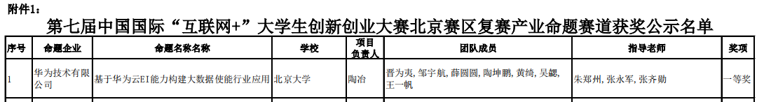 第七届中国国际“互联网+”大学生创新创业大赛获奖名单