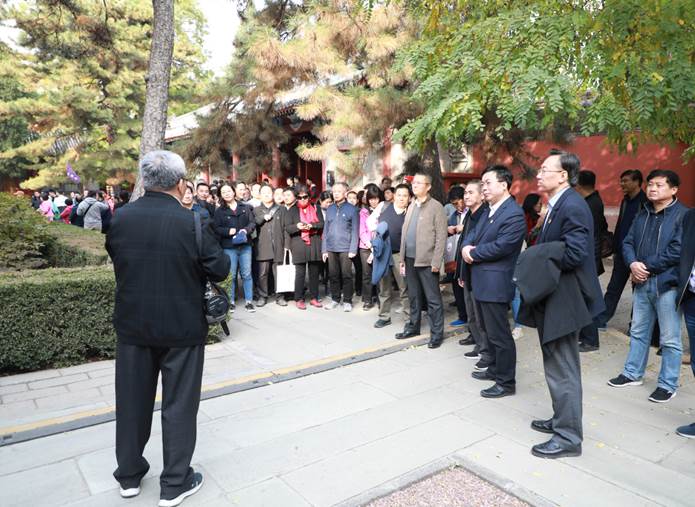 为扎实推进学校“不忘初心、牢记使命”主题教育,11月1日下午,bat365在线平台组织校领导班子成员、处级干部、二级党组织班子成员、马克思主义学院党员教师等80余人集体赴香山革命纪念地参观学习,瞻仰双清别墅、来青轩等革命旧址,缅怀毛泽东同志等老一辈革命家的初心与丰功伟绩。