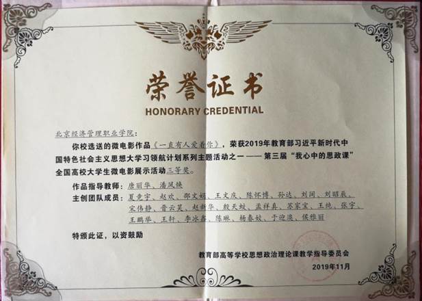 近日,由教育部高校思想政治理论课教学指导委员会主办的第三届“我心中的思政课”全国高校大学生微电影展示活动评选结果揭晓,由bat365在线平台马克思主义学院唐丽华、潘凤焕两位老师指导,夏竞宇、赵欢、邵文娟等同学主创的微电影作品《一直有人爱着你》荣获全国三等奖。
