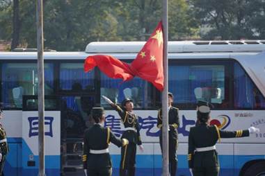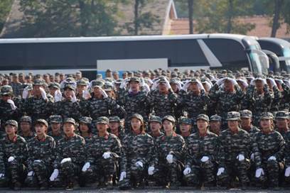 张连城宣布汇报表演开始。在雄壮的国歌声中,学校国旗仪仗队将五星红旗冉冉升起。在随后进行的分列式环节中,全体参训学生身姿挺拔、精神抖擞,以最饱满的精神风貌迎接检阅。同学们英姿飒爽,动作整齐划一,用铿锵有力的步伐和响亮的口号,在汇报表演中将军人的风貌展现的淋漓尽致。在军训成果汇报表演中,男生的擒敌拳,女生的“三声三相”汇报表演,男生的“三防”表演,赢得了现场师生的阵阵热烈掌声。领导们肯定的眼神,更是对所有新生们的嘉奖,为14天军训的辛苦付出画上了圆满句号。