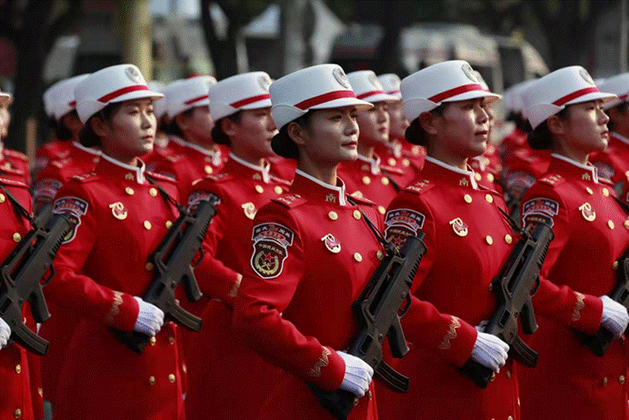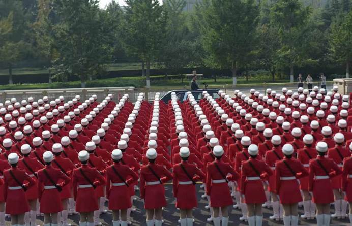 春节期间,接到学校关于选拔优秀学生参加国庆阅兵任务的指示后,会计与金融学院高度重视,在学生中进行了严格选拔,范娜同学最终推荐入选民兵方阵。3月8日,范娜同学进入黑庄户训练基地,5月23日,正式进驻阅兵村,10月1日,她在民兵方阵10排第一名基准兵的位置亮相天安门。213个日日夜夜里与她相伴的是75㎝,30㎝,96m,128步,在阅兵村的训练场上她永远以最高的标准要求自己,她给自己定的口号是“宁肯脱掉几层皮,队列也要走整齐”“把晚上当成白天练,把自己当成男兵练”。训练过程中有汗水,也有泪水,她的训练时间经常是5+2,白+黑,即便腿脚酸痛,被晒得黝黑发红依旧咬牙坚持,在长达7个月的艰苦训练中,她穿坏了三双训练靴、脚上磨出了无数的水泡,衣服每天湿透五六次,最终做到了“走百米不差分毫,走百步不差分秒”。