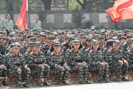 承训基地教官精神抖擞,动作整齐划一,带来了精彩表演,展示了军人的风采,为学生做出了榜样。