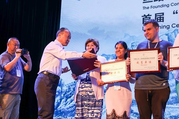 俄罗斯大使馆文化参赞Olga Melnikova女士为中国联盟院校授牌
