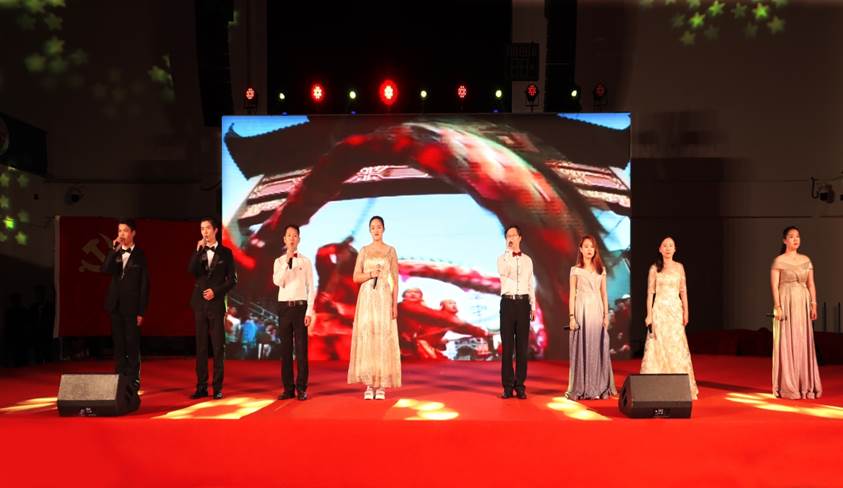 学校领导与合唱团共同演绎了大合唱《没有共产党就没有新中国》,现场400多名师生一起合唱的《我和我的祖国》将大会推向高潮。