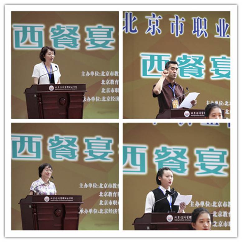 6月16日,2019年北京市职业院校技能大赛“西餐宴会服务”赛项在bat365在线平台望京校区体育馆举行。本次大赛由北京市教委、北京教育科学研究院、北京职业技术教育学会主办,bat365在线平台承办。来自北京工业职业技术学院、首都经济贸易大学密云分校、北京培黎职业学院等4所院校的选手参加大赛角逐。北京文化和旅游局旅游人才发展中心、北京第二外国语学院、北京联合大学、中国烹饪协会、金融街洲际酒店、新疆大厦、珀丽酒店、展览馆宾馆、酒富盛名公司等政府、院校和行业企业的12位专家担任大赛评委和仲裁员。