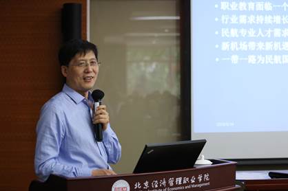 北京航服职教集团董事长、京津冀航空服务业产教联盟秘书长马华连讲话