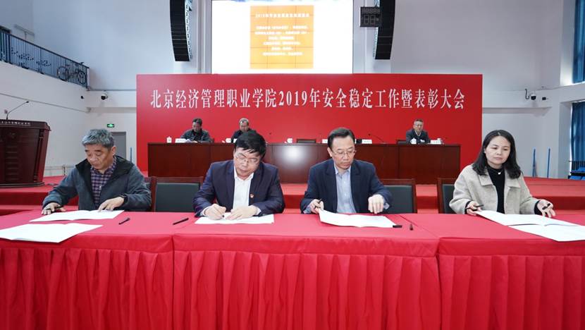 在会上,校党委书记张连城,党委副书记、院长姚光业与各党总支(直属党支部)党政负责人,分管校领导与职能部门负责人,分别签订了2019年维护校园安全稳定责任书。