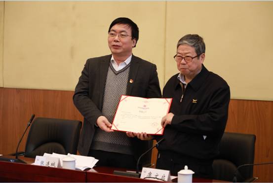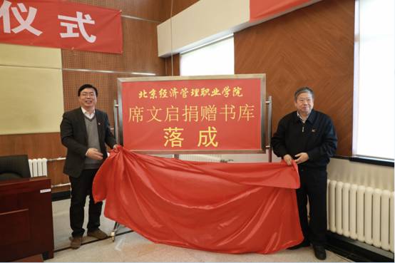 张连城与席文启共同为捐赠书库落成揭牌,代表学校向席文启教授颁发了捐赠证书。