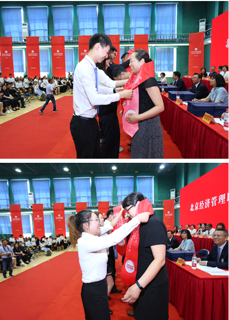 学生向教师代表赠送绶带