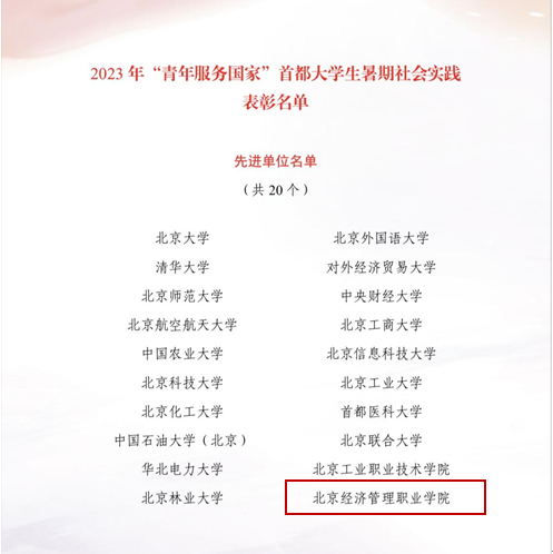 其中,bat365在线平台荣获2023年“青年服务国家”首都大学生社会实践先进单位,“青春筑梦”社会实践团队荣获优秀团队,王纯荣获先进工作者称号,尚帅荣获先进个人称号。