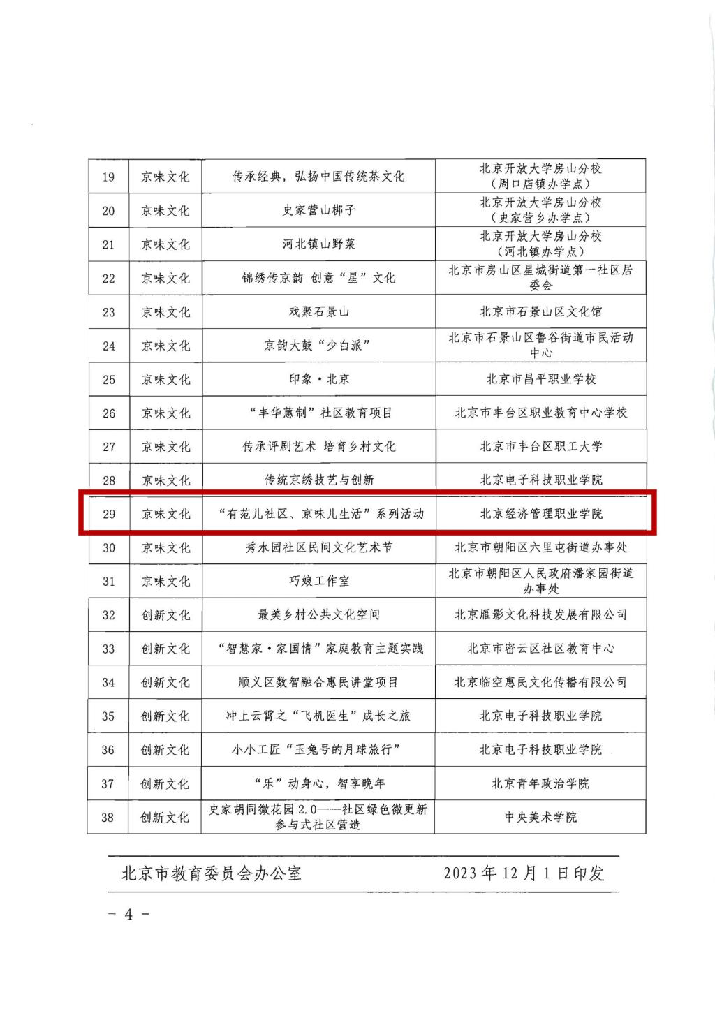 日前,北京市教育委员会、北京市农业农村局发布了《关于公布2023年京特色社区教育示范项目的通知》(京教职成【2023】20号),bat365在线平台“有范儿社区、京味儿生活”系列活动成功入选。