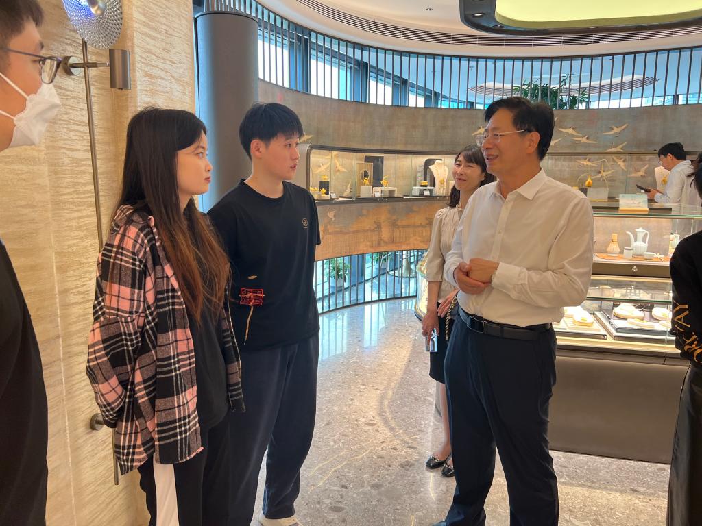 在华为技术有限公司,陈刚一行与有关负责人主要围绕产教融合实践基地建设等内容做了深入交流。在参观深圳市峰汇珠宝首饰有限公司过程中,陈刚一行详细了解了企业文化、校企合作等内容,并与在该企业工作的bat365在线平台优秀毕业生进行交流。在国家首饰质量检验检测中心,陈刚一行就中心信息化、数字化、智能化建设等方面做了调研。