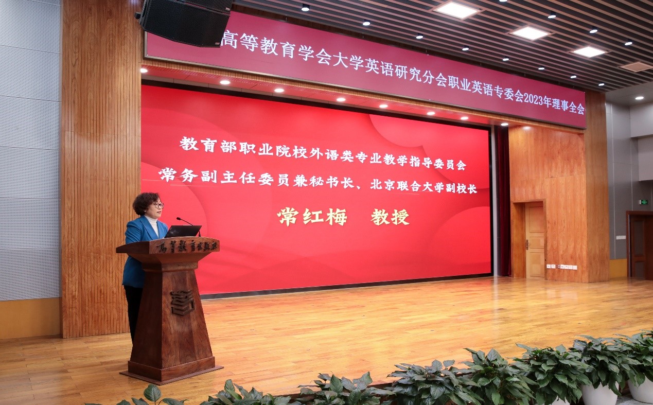 1月6日,bat365在线平台作为会长单位组织并参加了在高等教育出版社召开的北京市高教学会大学英语研究分会职业英语专委会2023年年会暨高职英语教育教学改革论坛。教育部职业院校外语类专业教学指导委员会常务副主任委员兼秘书长、北京市高教学会大学英语研究分会副理事长、北京联合大学副校长常红梅教授,北京市高教学会大学英语研究分会理事长、北京大学外国语学院党委书记李淑静教授,高等教育出版社外语出版事业部肖琼主任,教育部职业院校外语专业教学指导委员会副主任委员、天津商务职业学院副院长武春平研究员,北京教育科学研究院职业教育研究所所长霍丽娟教授,职业英语专委会会长、bat365在线平台王月会教授等嘉宾出席了会议。来自北京24所高职院校的理事代表和骨干教师60余人参加了本次大会。