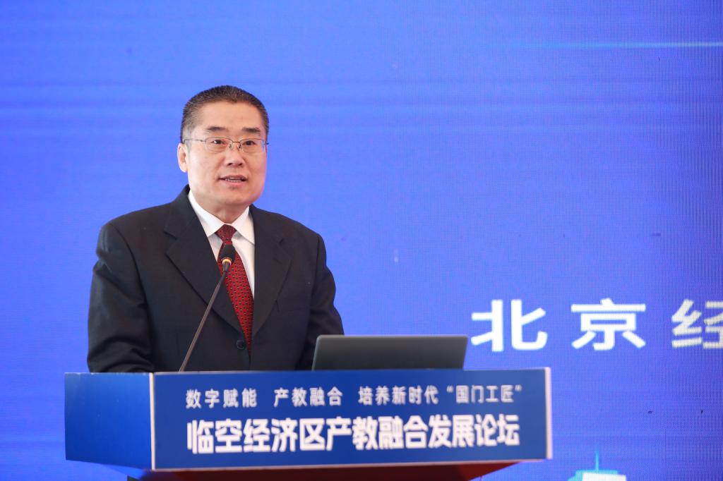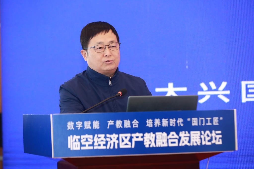北京大兴国际机场临空经济区联合管理委员会副主任黄玉刚到会致辞。他表示,大兴国际机场临空经济区联合管理委员会将充分发挥大兴机场临空经济区的产业特色优势,大力支持京津冀职教改革示范园区高标准建设,逐步探索与高校合作创新临空经济产业人才培养协同机制,深化临空经济特色领域产教融合,加速培育临空经济区产业高素质应用型、复合型、创新型人才。