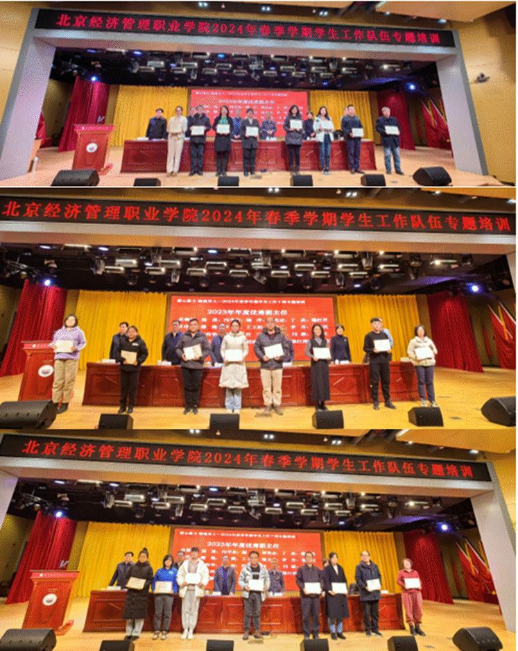 本次培训历时2天,包括开班仪式、专题报告、交流发言和颁发证书等环节。同时,宣读了获得2023年年度优秀辅导员、优秀班主任名单,与会领导为获得2023年年度优秀班主任颁发荣誉证书。