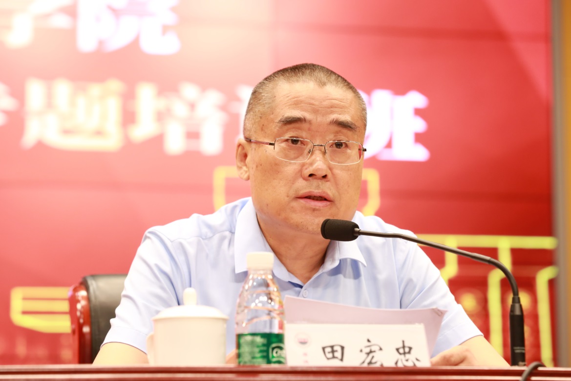 田宏忠在主持时强调,要严格遵守学校安排和纪律,深入学习思考,工学结合,确保学有所获,切实提高岗位履职能力、部门建设能力和领导水平;要通过培训进一步统一思想,抢抓机遇,勇于当担,切实增强工作使命感和责任感;要进一步提高思想认识,坚持把政治建设放在首位,切实打造富有活力,团结和谐的各级领导班子;要进一步清晰定位,明确职责,完善制度,紧抓落实,补短板、强弱项,履好职、尽好责,为全面提升学校治理体系和治理能力现代化做出贡献。