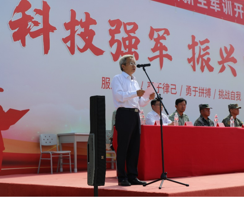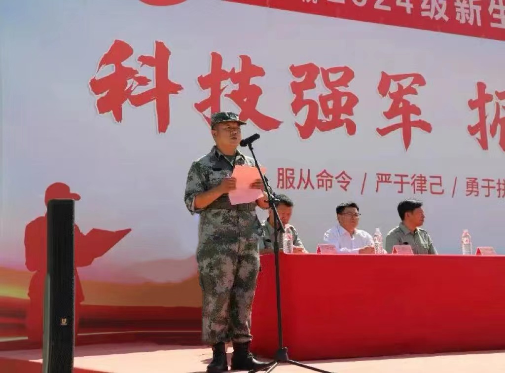 马向龙代表教官做动员讲话。他表达了高质量完成军训任务的信心和决心,同时鼓励所有参训学生充分发挥“军纪如铁、意志如钢、超越自我、自尊自强”的精神,在军训中锻炼体魄,磨练意志。