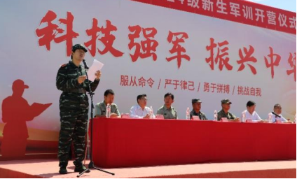 陈刚做开营讲话。他指出,大学军事训练是深入学习贯彻落实习近平新时代中国特色社会主义思想和习近平强军思想的关键环节,是坚决拥护“两个确立”、坚决做到“两个维护”的生动实践,是国家人才培养和国防后备力量建设的重要措施,是学校教育和教学的一项重要内容,希望同学们充分认识军训的重要性。同时他代表园区和学校对全体参训学生提出三点希望:一是提高站位,挺膺担当,以“强国有我”的担当书写青春篇章。扎实学习习近平强军思想,深刻认识自己所肩负的国防重任,树立居安思危的忧患意识。二是刻苦训练,磨练意志,以“锤炼品格”的意志挥洒青春汗水。在思想上、行动上要时刻以军人的标准严格要求自己,服从命令,听从指挥,锤炼品行,勇于挑战,练就一身军事硬本领。三是严守军纪,团结协作,以“精诚之至”的协作圆满完成任务。争创军训优秀集体,争当军训优秀标兵,用精诚协作之至为军训提交一份满意的答卷。