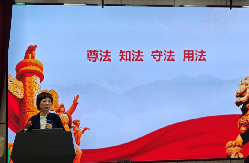 唐素林从宪法与人们的日常生活、宪法的基础知识、公民的基本权力和义务等方面,详细阐述了国家宪法日的由来、宪法的起源、新中国的宪法、宪法的本质、宪法的基本特征和宪法在个人权力保障中的作用。她强调,宪法是国家的根本大法,是公民权力保障书,是实现民主价值的基本形式。作为新时代青年要切实履行好公民基本义务,弘扬宪法精神,做宪法的忠实崇尚者、自觉遵守者、坚定捍卫者,为学习贯彻实施宪法,推进全面依法治国,建设社会主义法治国家贡献青春力量。