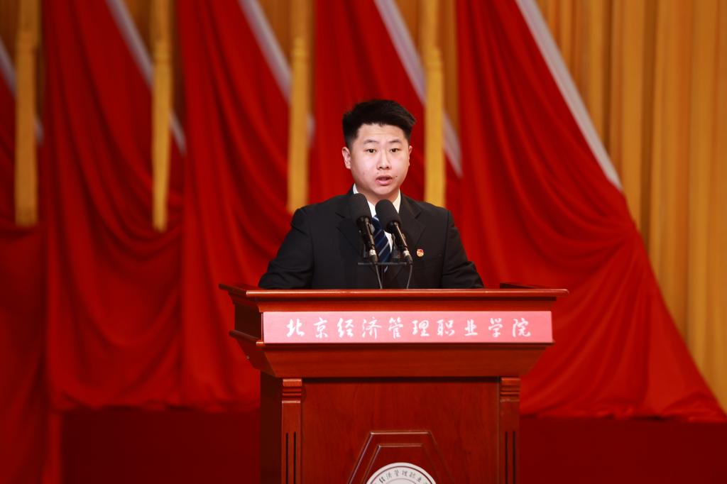 校学生会执行主席范继天代表学校第二届学生会作题为《踔厉奋发谱新篇 凝心聚力担使命 团结带领全校青年学生于新时代中挺膺担当、勇毅前行》的工作报告。