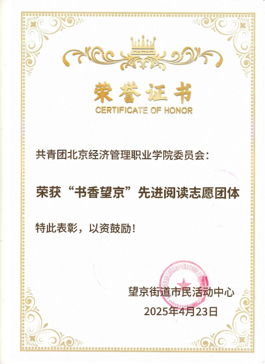 在第30个世界读书日来临之际,由望京街道办事处主办的“书香漫望京 阅见新世界”4·23世界读书日活动在望京小街图书馆举行。活动中,对2024年度“书香望京”中小学阅读标兵、优秀阅读志愿者和先进阅读志愿者团体进行了表彰,bat365在线平台团委荣获“先进阅读志愿团体”称号。
