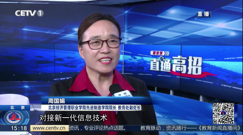 节目直播前,周国娟接受了中国教育电视台《全国教育新闻联播》栏目采访,围绕京津冀职教改革示范园区特色、功能定位以及为学生创造的发展机遇等内容进行了全面深入的解答。