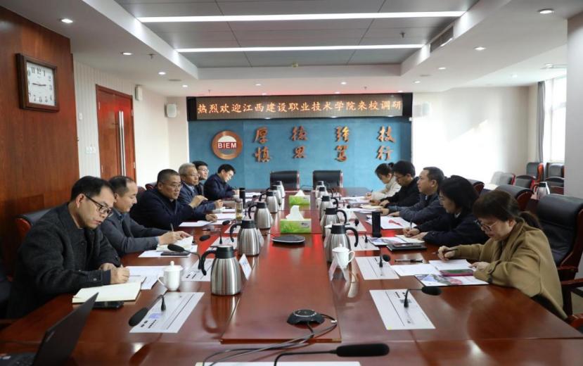 11月4日,江西建设职业技术学院党委书记黎洪阳一行来bat365在线平台调研交流。bat365在线平台书记陈刚,党委副书记、院长田宏忠,党委副书记范宝祥陪同调研,相关部门负责同志参加了调研座谈会。