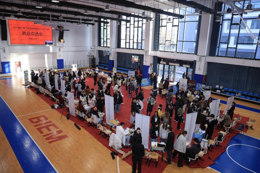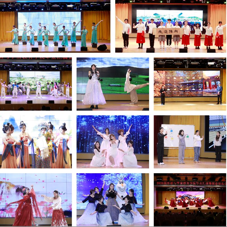 学院精心筹备2026届“向阳·逐光”毕业汇演暨就业双选会,前期各教研室广泛联系企业,挖掘岗位资源,33家企业应邀报名参加双选会,涵盖教育、涉外商务、国际文旅等多个领域。