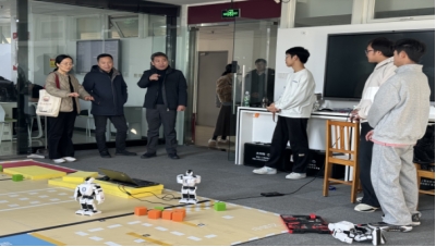 与会人员对职业院校国际化发展相关问题进行了交流。会后,调研组实地走访了学校人工智能学院和珠宝与艺术设计学院产教融合实训基地,对于学校紧密对接产业需求,打造特色实践创新平台的做法表示高度认可。
