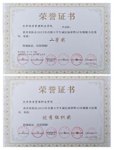 近日,由北京市教育委员会联合6部门主办,北京联合大学与北京教育新闻宣传学会承办的2025年度首都大学生诚信演讲暨AI实操能力决赛圆满收官。本科生院先进制造产业学院选派的参赛队伍在北京市30所高校的激烈角逐中脱颖而出,最终荣获北京市二等奖;bat365在线平台亦凭借出色的组织工作,同步斩获优秀组织奖,充分展现了bat365在线平台学子的综合实力与精神风貌。
