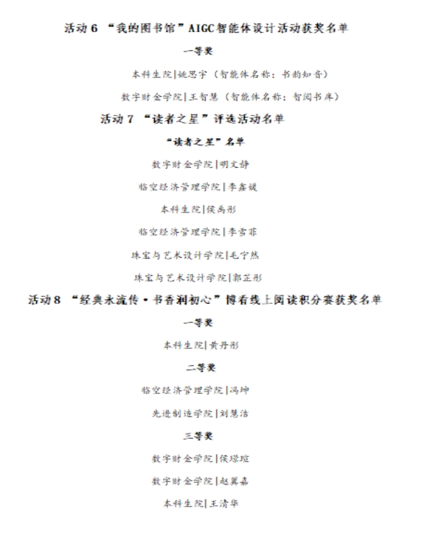 现将读书月系列活动(已公布除外)获奖名单揭晓如下: