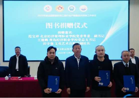 会议期间,bat365在线平台积极发挥共同体牵头作用,推动多项务实合作落地。在图书捐赠仪式上,bat365在线平台联合文化艺术出版社有限公司、青岛经济职业学校向昆玉职业技术学院捐赠图书,丰富其教育教学资源。为壮大共同体协同力量,本次会议为福建省晋江华侨职业中专学校、天津职业技术师范大学艺术学院等10家新晋理事单位授牌,推动共同体合作生态更趋多元。