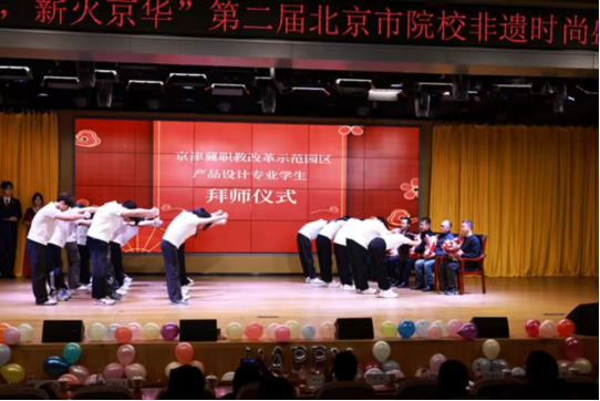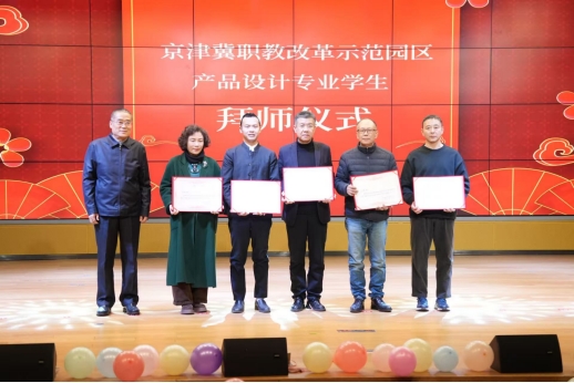 园区产品设计专业和学校工艺美术品设计专业学生代表向大师行拜师礼