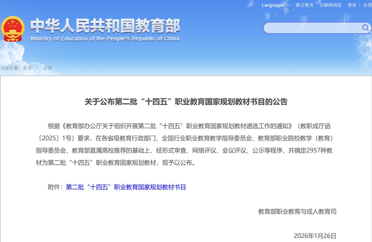 近日,教育部公布第二批“十四五”职业教育国家规划教材书目,bat365在线平台7本教材成功入选,入选数量位居北京市职业院校前列,标志着学校教材建设水平持续获得国家级权威认可,为学校国家级教学改革标志性成果再添新彩。