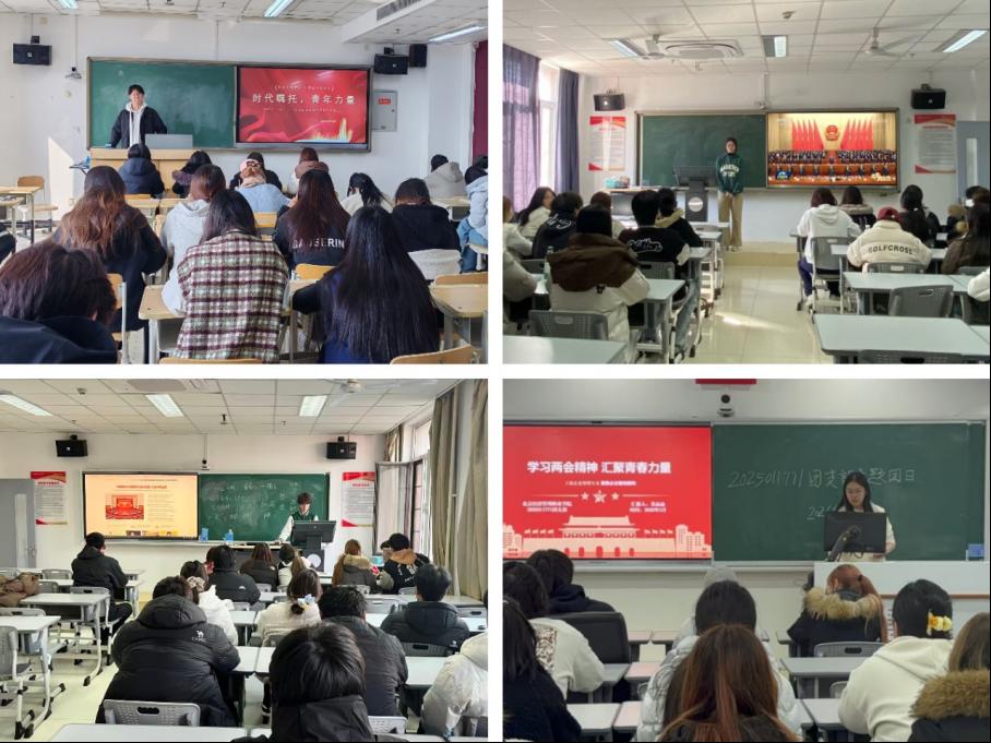 本科生院组织各团支部开展形式多样、特色鲜明的主题学习活动。2025110051团支部融合财会专业特色,通过专题学习、交流研讨、微宣讲及诚信承诺仪式等环节,让全国两会精神学习与专业认知、职业素养培育深度结合。2024110083团支部搭建多元学习平台,组织专题学习、思想研讨与“两会青年说”特色活动,通过团员分享、观点碰撞推动全国两会精神入脑入心。2025110052团支部以专题学习会、主题交流研讨会为载体,结合“两会青年说”微宣讲,全方位解读两会核心部署,凝聚青年奋进共识。2025110073团支部规范开展专题学习会,通过课件生动讲解、全国两会热点视频观看、分组交流探讨,由班主任总结升华,构建了“学、思、悟”一体化学习模式。2024110021团支部创新形式,推出“两会关键词・谁是卧底”趣味互动、“对话2035年的自己”主题分享等特色活动,让全国两会精神学习在轻松氛围中走深走实。