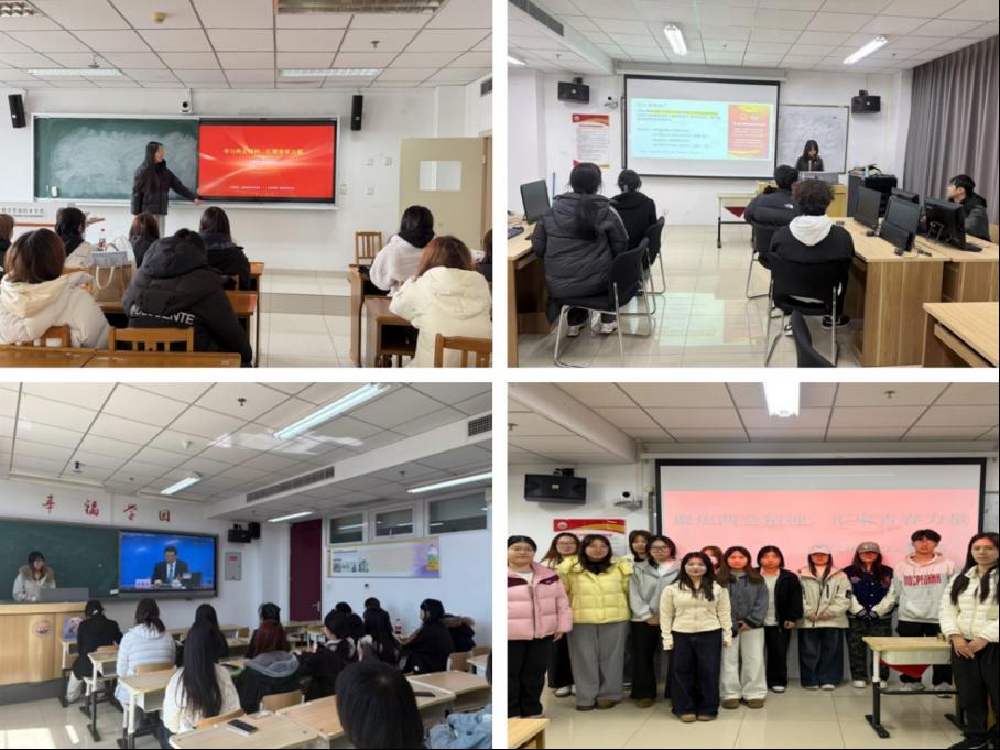 外语与学前教育学院立足专业特色与青年成长,组织各团支部扎实开展全国两会精神学习主题团日活动。2024040051团支部结合商务英语专业特色,开展双语理论学习、全国两会关键词解析与国际议题分享,深入解读高水平对外开放、外贸创新等国家战略,以专业视角传递中国声音。2024040052团支部以“集中领学+小组研讨”为核心机制,系统学习《政府工作报告》重点内容,同步开展全国两会词汇英文表达训练,将思政教育与语言应用深度融合,强化青年国际视野与家国情怀。2024040761团支部组织观看全国两会实录与政策解读视频,围绕新质生产力、绿色发展、教育强国等核心议题开展主题交流,并结合专业方向探讨如何投身国家战略实践。2025040051团支部以“理论学习+互动实践”为主线,开展全国两会知识趣味竞猜、热词接龙与入团誓词重温活动,在沉浸式参与中深化对全国两会精神的理解,激发团员奋进动力。2025040052团支部构建“专题辅导+实践服务”工作体系,开展全国两会政策精准辅导与“青春助困”志愿服务,推动学习成果向社会服务延伸,彰显青年担当。