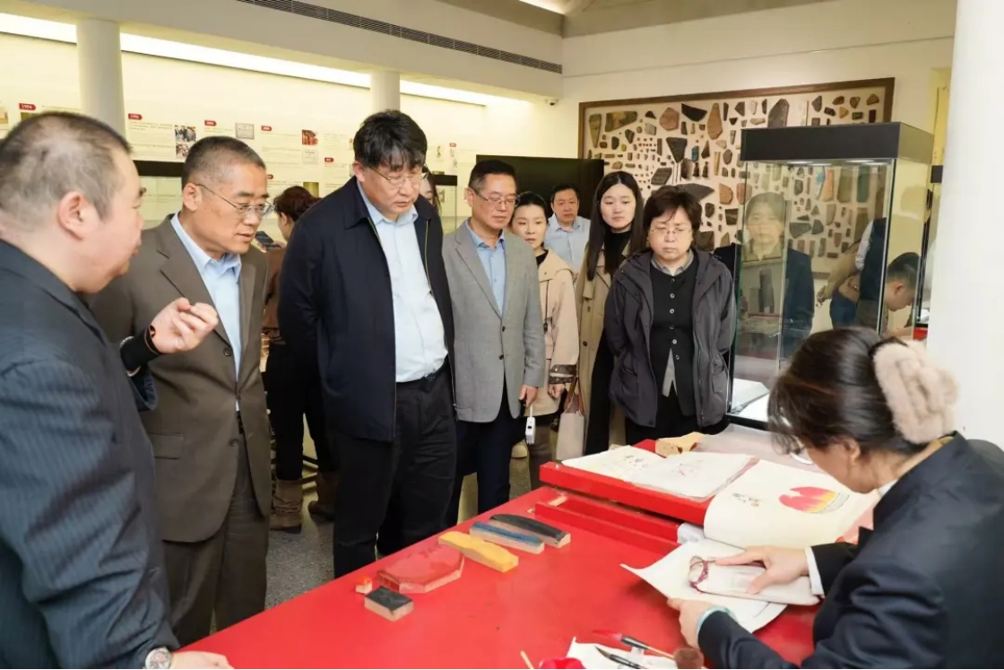 仪式结束后,我院教师代表与与会嘉宾,一同参观了荣宝斋木版水印工艺坊和荣宝斋美术馆。大家在现场亲身感受了木版水印“钩、刻、印”等工序的高超技艺,感受着一幅幅艺术珍品所散发的文化魅力。这次近距离的体验,不仅加深了对非遗技艺的理解,也更加坚定了大家投身于传统文化创新性发展的信心与决心。