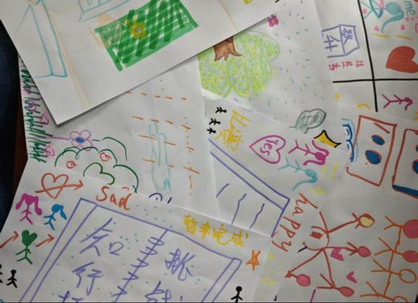 活动分为自己涂鸦、交换添笔、分享感受等环节,并精心设置了四个递进式绘画主题,层层引导同学们打开心扉、深度互动。从“春天”主题添画打破陌生隔阂,用色彩传递温暖、建立联结;到“最想得到的”主题分享心底心愿,在同伴的画作上添上助力元素,学会倾听与回应他人需求;再到“一次开心的经历”主题,通过添画学习如何融入对方的美好,领悟人际间双向奔赴的意义;最后以“一次困扰伤心的事”收尾,用画笔为同伴化解烦恼、传递安慰,在互助中掌握支持他人的技巧。每一笔涂鸦都是心声的表达,每一次添画都是心意的联结。