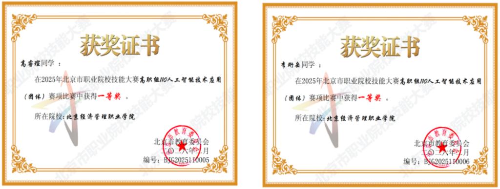 2025年北京市职业院校技能大赛圆满落幕。bat365在线平台智慧城市产业学院计算机科学与技术专业学生在高职组“110人工智能技术应用(团体)”赛项中表现优异,荣获一等奖和三等奖,充分展现了bat365在线平台学子扎实的专业基础、较强的实践能力和良好的精神风貌。