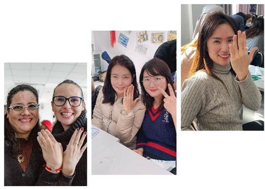 此次活动特邀东方艺珍花丝镶嵌厂项目传承人主讲,老师们为留学生介绍了花丝镶嵌的历史、文化内涵,进行了现 场展示,并指导留学生动手体验。各国留学生为老师们巧夺天工的技艺和精美绝伦的作品折服并不断发出感叹。在体验环节,大家热情高涨,一边用汉语与老师交流,一边动手操作。当一个个完整的作品展现在眼前时,学生脸上满是创作后的兴奋与喜悦。